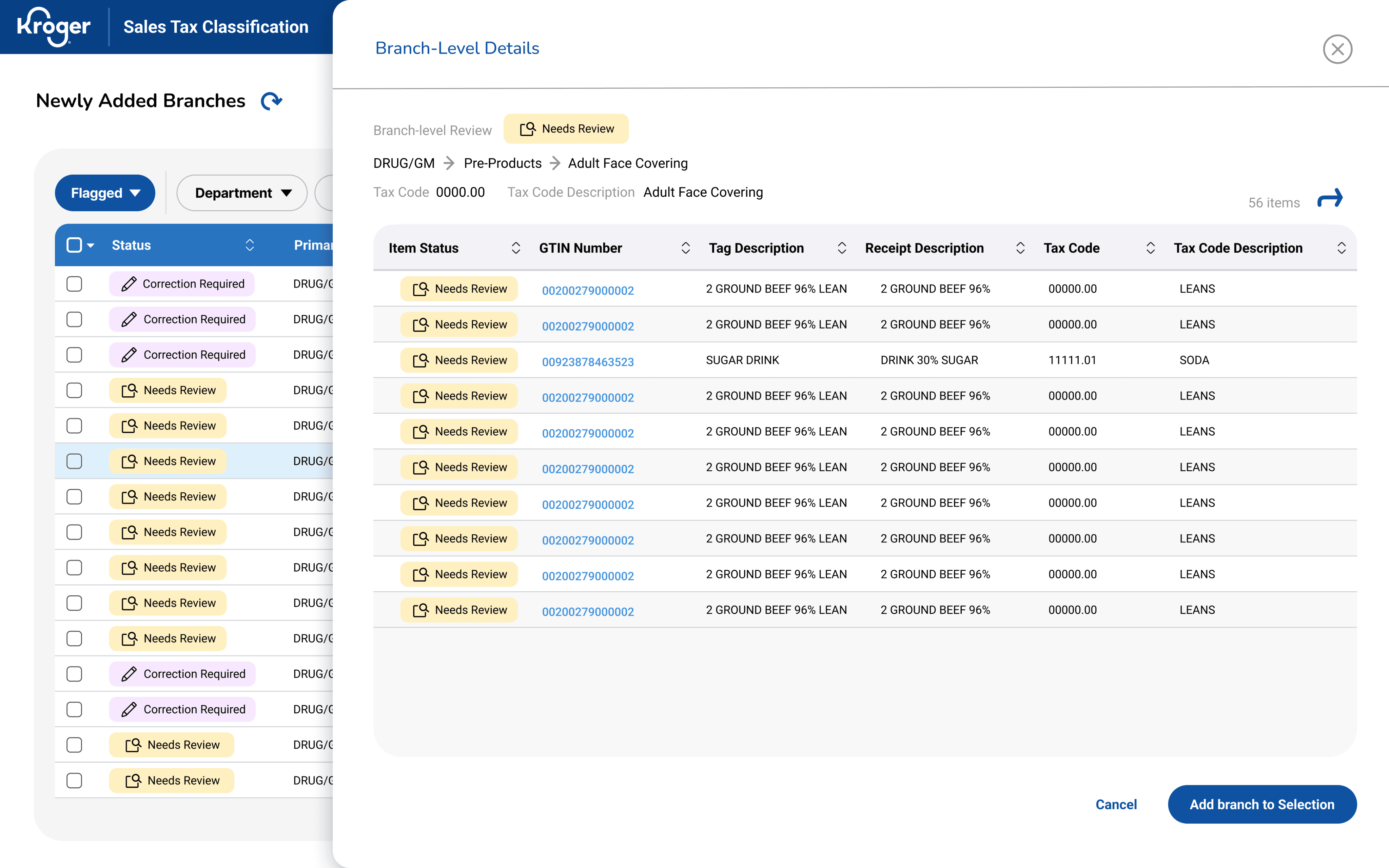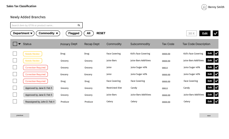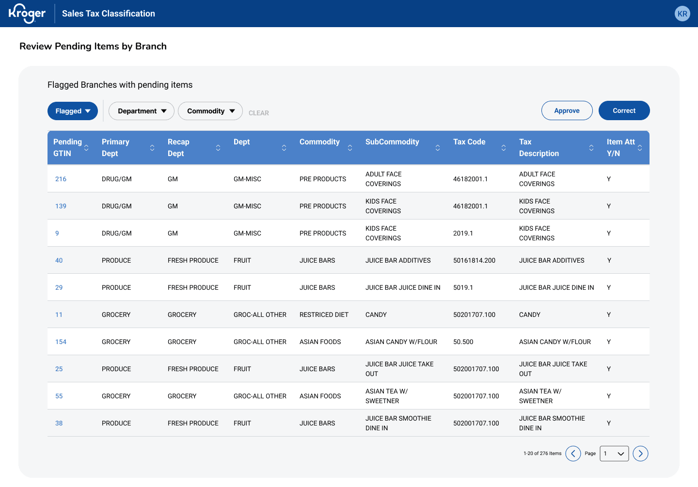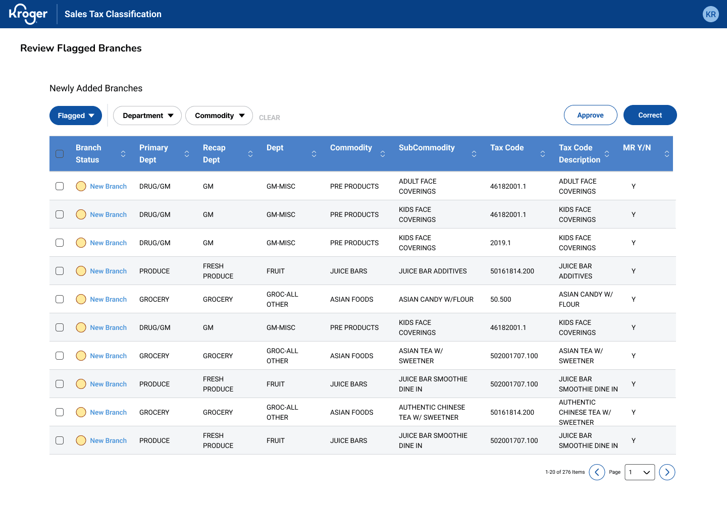 I owned the research and product design of a management platform to resolve tax code inconsistencies for Kroger’s incoming products by aligning user mental models with system requirements, reducing 15% tax code errors.