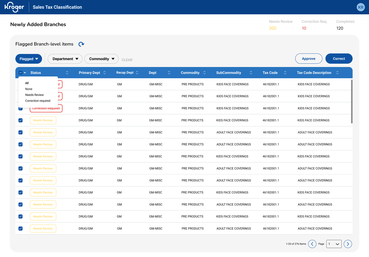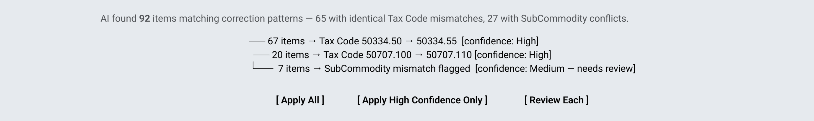 Correcting branches, yet alone item-level cases one-by-one couldn't keep up with volume without adding headcount. We continued our focus on consistent bulk selection and correction workflow for similar items, quick approve action for obvious passes.