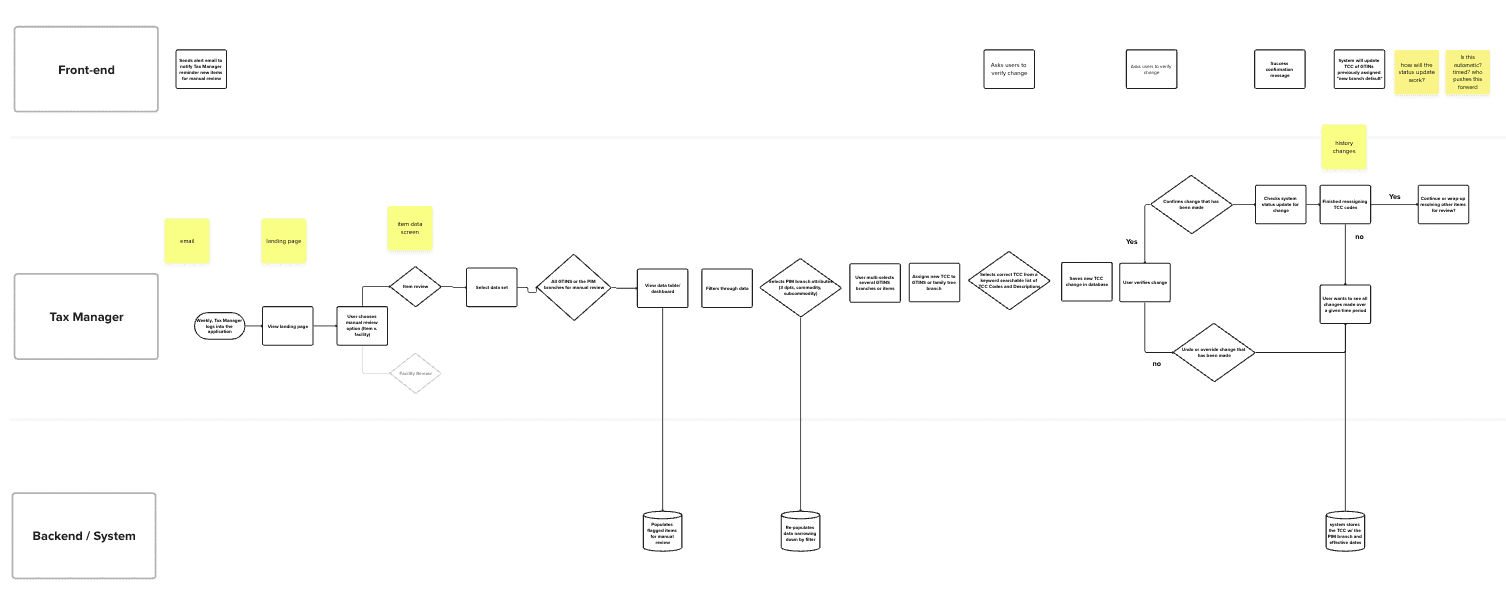 Due to a company reorg, my efforts stopped after final design handoffs and later informed a business estimation of $500-700K annually in operational cost savings (based on labor hours reclaimed across sales tax team). In it’s early-stage process formalization, success was tracked through adoption then continued by quantitative KPIs.